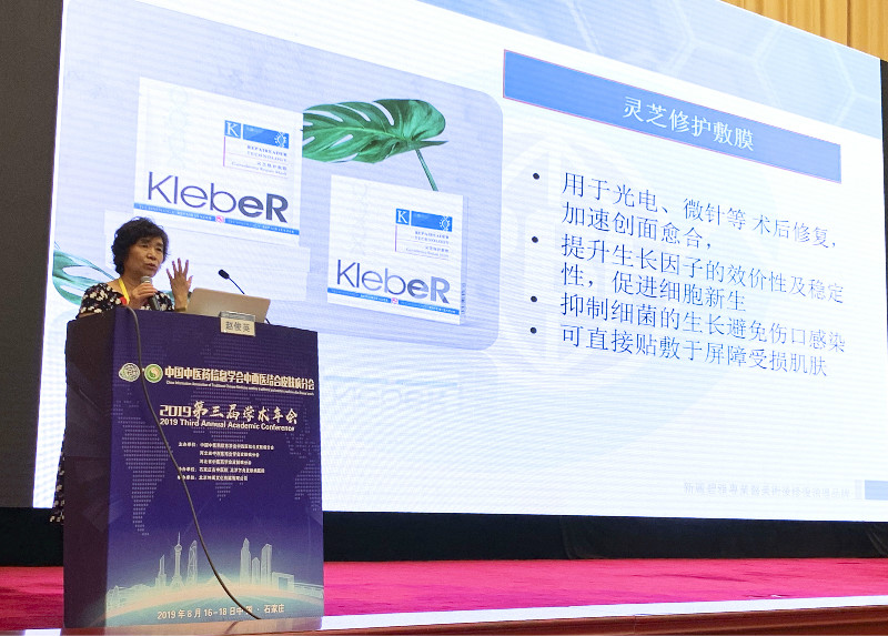 本次大会邀请了赵俊英赵教授作为学术顾问,赵教授是首都医科大学附属北京友谊医院皮肤科主任医师、教授、博士生导师、硕士生导师,中国医师协会皮肤科分会委员、中华医学会北京皮肤科分会常委、北京中西医结合学会皮肤性病学专业委员会副主任委员、中国医师协会美容与整形医师分会极光整形亚专业委员会常委、北京医师协会医疗美容专科医师分会副会长、北京中西医结合学会医学美容专业委员会副主任委员、北京皮肤病专家会诊中心主任。大会中赵教授上台发表讲话,并展示了克蕾贝尔产品研发的新成果——克蕾贝尔灵芝修护原液,该原液主要成分为赤灵芝,用于刺激肌肤微循环,增加皮肤紧实度,降低皮肤粗糙度。同时可以在伤口愈合过程中,激发免疫活性,减轻旧伤疼痛,促进新细胞的形成。对医学美容、微整术后恢复有极大的帮助,光电术后、痤疮、敏感肌肤、红血丝等造成皮肤损伤的情况有很好的效果。