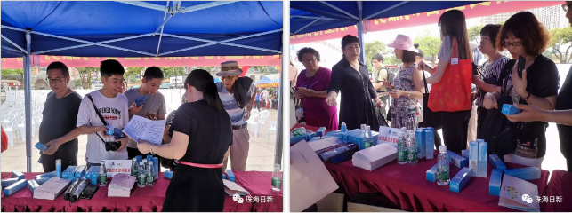 今天的天气就像日新人一样热情火烈。尽管天气十分炎热,观众依旧顶着头顶的太阳,来到现场一览究竟。现场所谓琳琅满目,一眼望去,像极了一场大型展览活动。但最受欢迎的要数我们珠海日新了。活动还未开始,展位就已经站满了观众。
